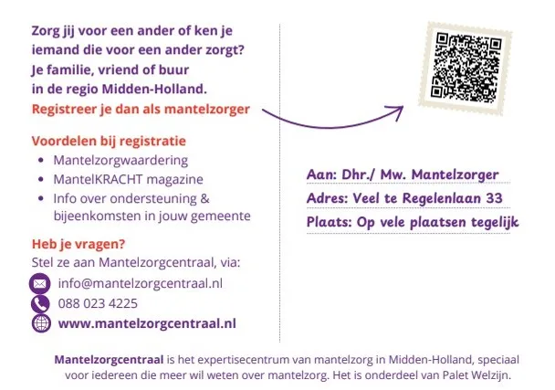 “Een verrassend inzicht! De studenten ontdekten dat we onze communicatie niet alleen op de mantelzorger zelf moeten richten, maar juist op diens omgeving. Want bijna iedereen kent wel iemand die mantelzorg verleent – maar diegene zelf zal zich niet zo noemen. Dus als je via het netwerk van die persoon communiceert, bereik je indirect veel meer mensen. Dit idee vormde de basis voor een nieuwe communicatiecampagne in de regio Midden-Holland. Deze hebben we ontwikkeld met financiële steun van Gedeelde Zorg en draait momenteel in meerdere gemeenten, denk aan Gouda, Waddinxveen, Bodegraven-Reeuwijk, Zuidplas en Krimpenerwaard. Overal gebruiken we dezelfde boodschap, maar we verwijzen per gemeente naar de juiste lokale organisatie voor de mantelzorgregistratie….