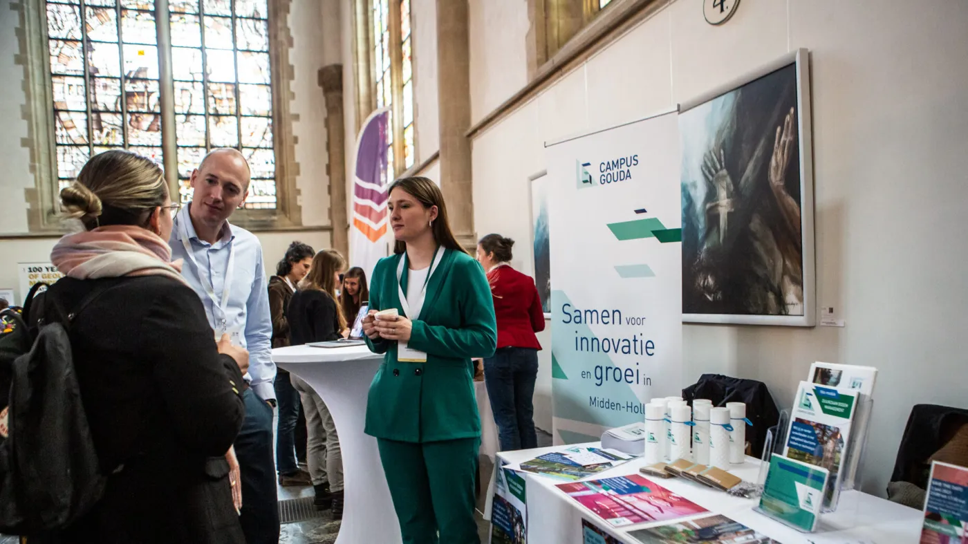 En dat waren er nogal wat! In een gevarieerd dagprogramma in de Sint Janskerk in Gouda is de stand bezocht door een divers publiek. Wat doet Campus Gouda, voor wie is het, waar zitten onze raakvlakken en kunnen we nader uitwisselen of samenwerken. Een mooie eerste kennismaking met verschillende mensen, maar met één ding gemeen: bodemdaling als uitdaging.